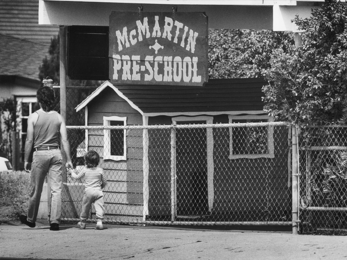 April 19, 1989 – A developer purchased the McMartin Pre-School in Manhattan Beach, Calif., following lawsuits that alleged staff had performed satanic rituals. The case resulted in no convictions. Lacy Atkins/Los Angeles Times via Getty Imag hide caption